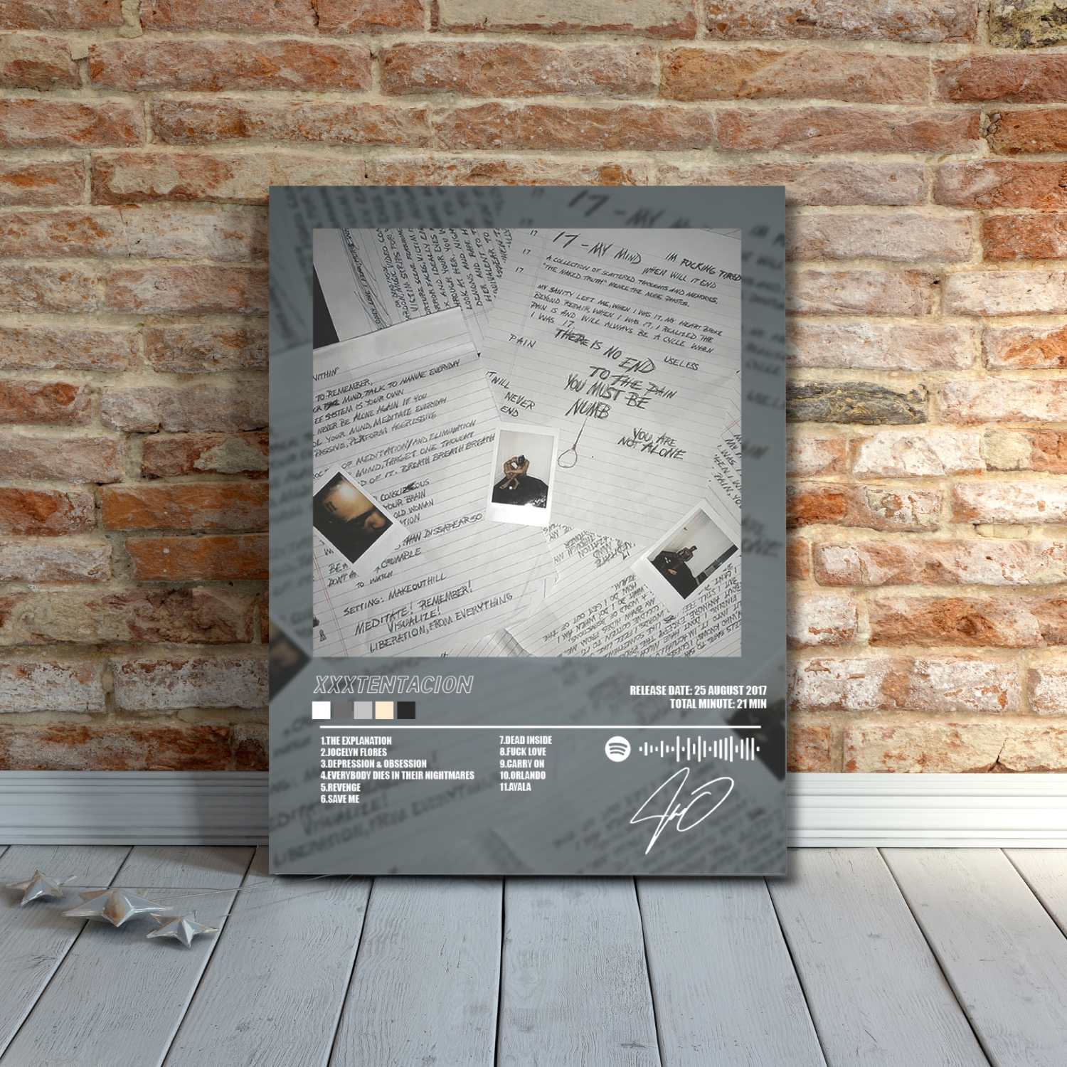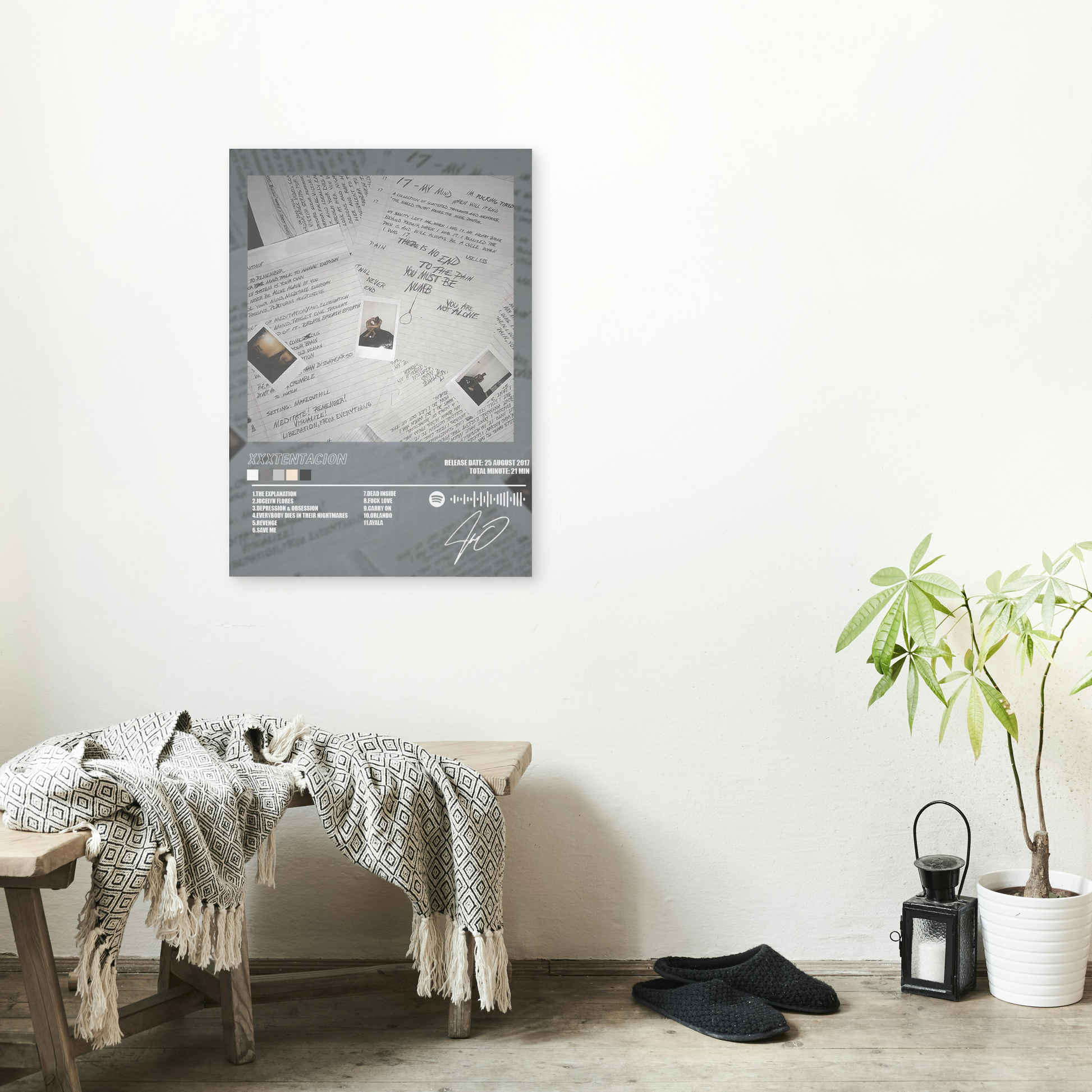 Porta l'intensità emotiva dell'album "17" di XXXTentacion nella tua stanza con questo poster stampato su lastra di alluminio di alta qualità. Con dimensioni di 30x40 cm, la sua finitura lucida e resistente garantisce colori vividi e dettagli nitidi, rendendolo perfetto per decorare ogni ambiente con stile e personalità. Un must per i fan che vogliono celebrare un capolavoro musicale con un tocco moderno e duraturo.